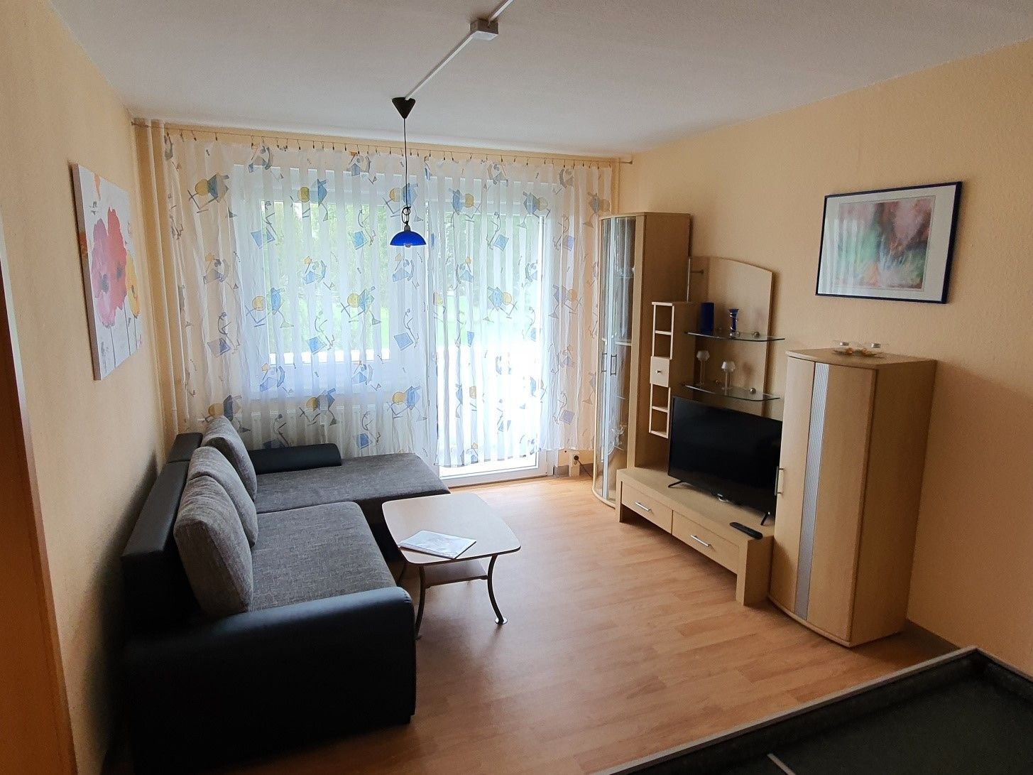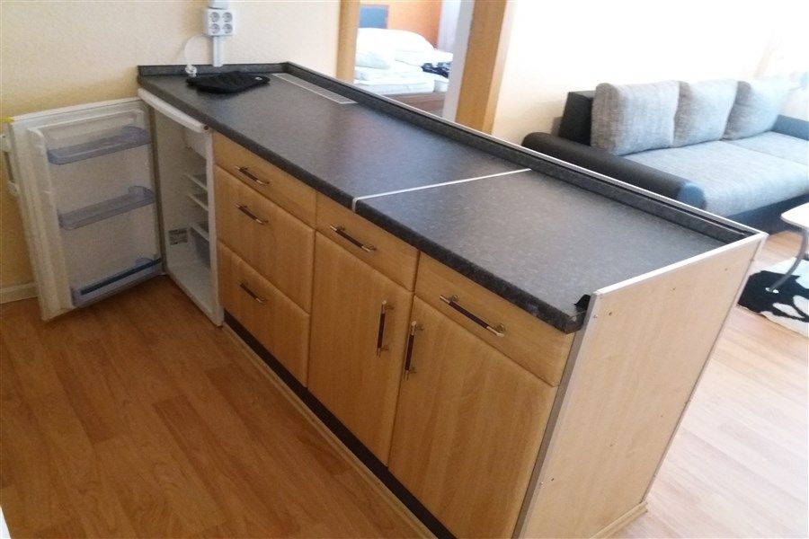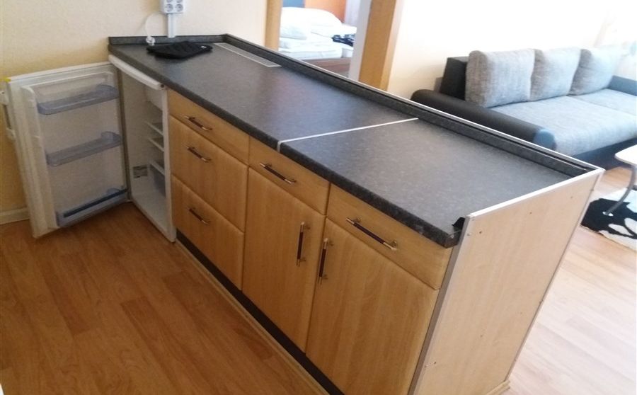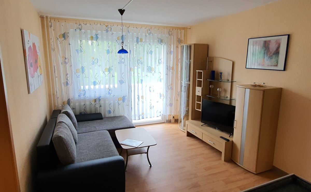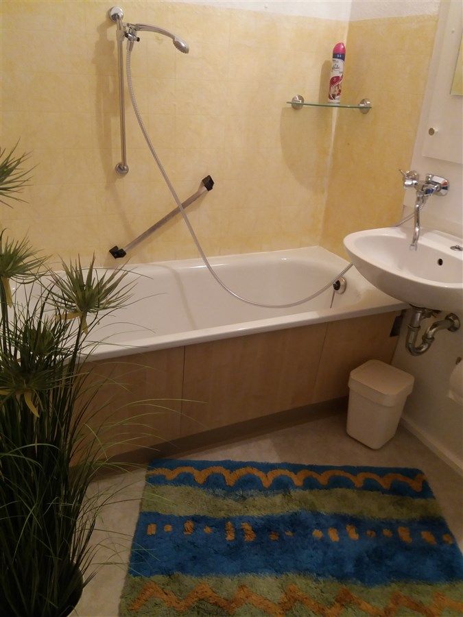 Gemütliche 2-Raum-Gästewohnung, komplett möbliert, Wohnbereich mit offener Küche, Schlafbereich mit separatem WC sowie einem schönen Bad mit Badewanne. Zum Schlafen stehen Ihnen ein Doppelbett sowie eine Couch mit ca. 140cm Liegefläche zur Verfügung (max. Belegung für 4 Erwachsene, gern stellen wir Ihnen zusätzlich, bei Bedarf, ein Babybett zur Verfügung). Die Loggias laden zum Entspannen ein, geniessen Sie den Blick auf den Goldbachpark. Eine komfortable Ausstattung ist für uns selbstverständlich. Der Aufzug steht Ihnen jederzeit zur Verfügung.