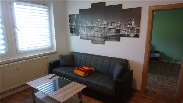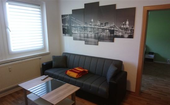 Gemütliche 2-Raum-Gästewohnung für 2 - 4 Personen, komplett möbliert, Wohnzimmer mit Schlafcouch, Küche (Kühlschrank m. Gefrierfach, Microwelle, Kaffeemaschine, Wasserkocher, Toaster, Eierkocher,...), Schlafzimmer mit Doppelbett sowie einem schönen Bad mit Dusche. Eine komfortable Ausstattung ist für uns selbstverständlich.