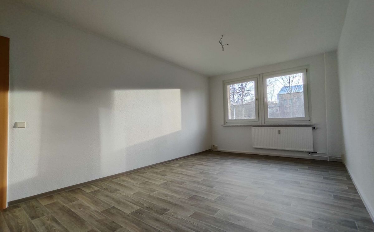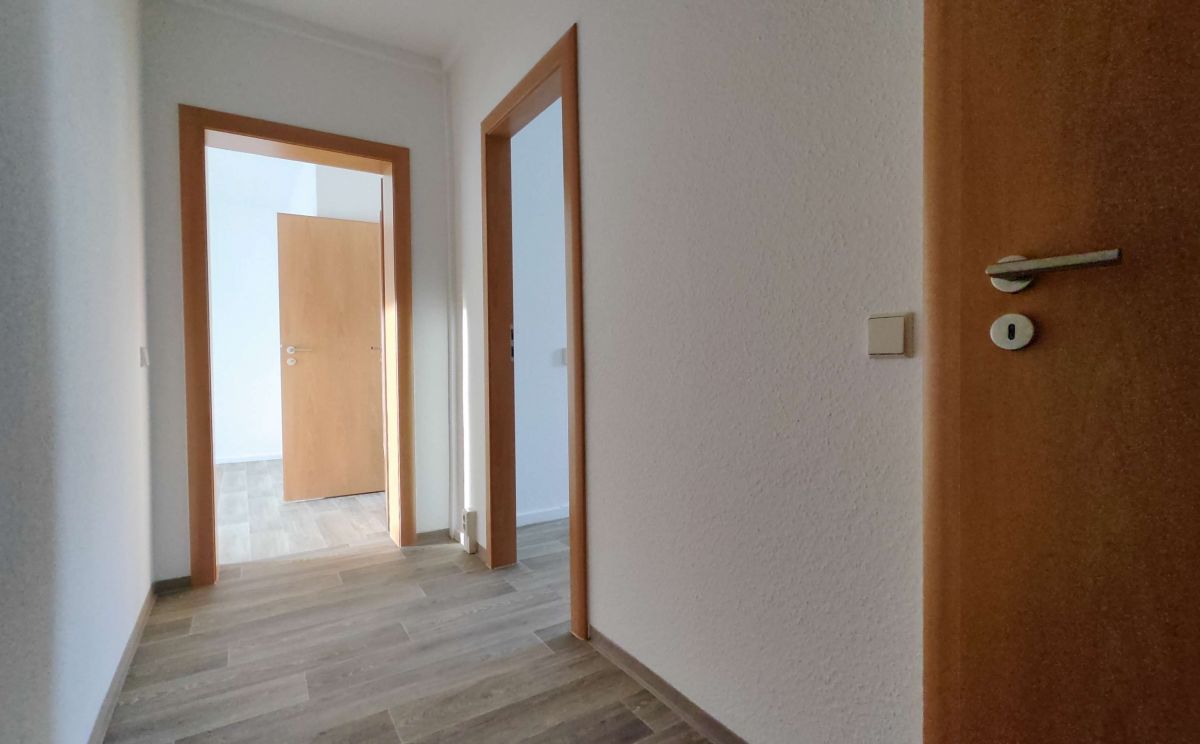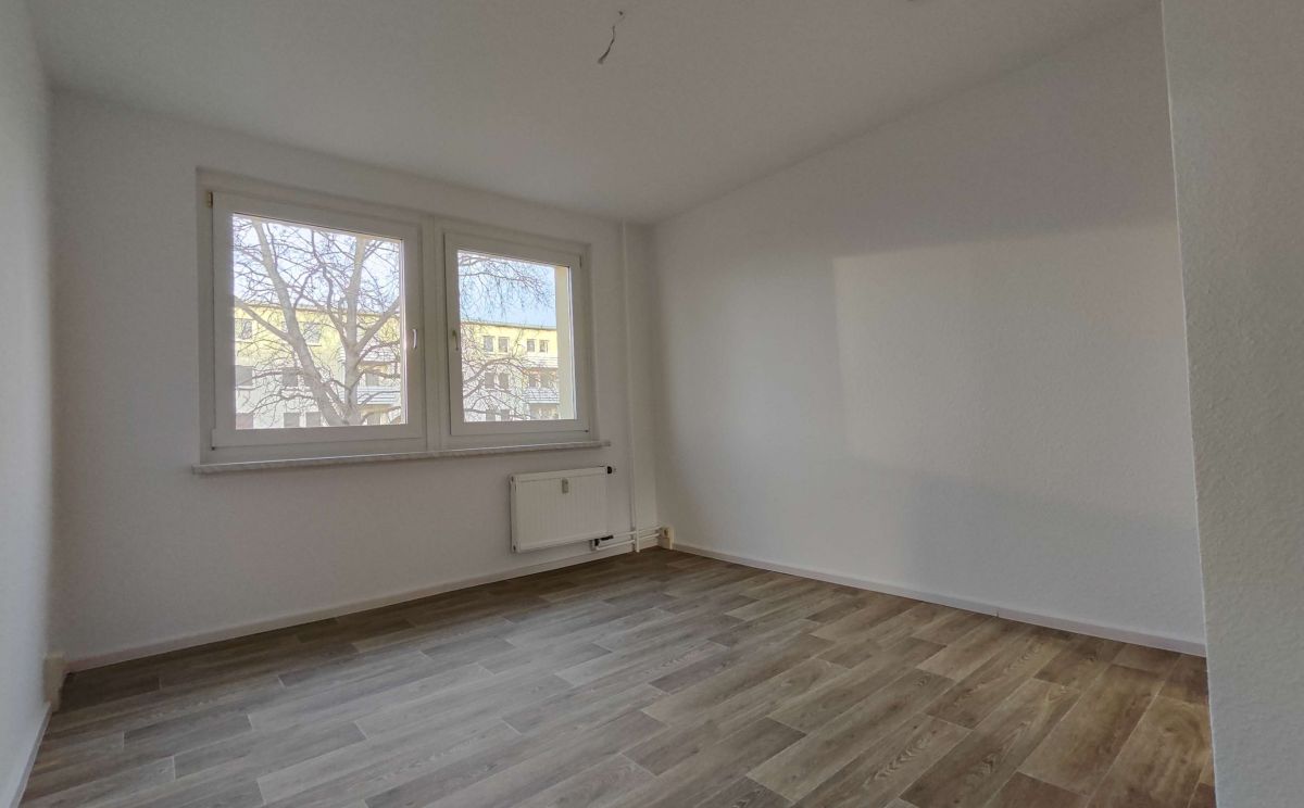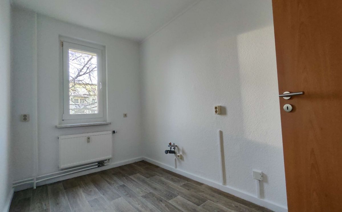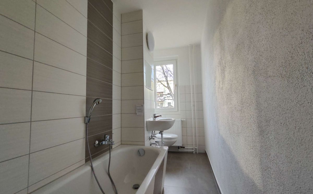 Die sonnige 2 Raum-Wohnung im 1. OG, besteht aus einem Wohnbereich mit danebenliegendem Schlafzimmer. Der Fußboden im Wohnbereich, Schlafzimmer und Flur wurde mit einem warmfarbigen PVC-Belag ausgestattet. Das Badezimmer mit Badewanne ist modern gefliest. Ein Waschmaschinenanschluss ist in der Wohnung vorhanden. Die Küche ist mit einem Fenster versehen. Fernwärme zur Heizungs- und Warmwasserversorgung. In den Betriebskosten ist ein monatlicher Betrag in Höhe von 5,07 € für den Fernsehanschluss enthalten.