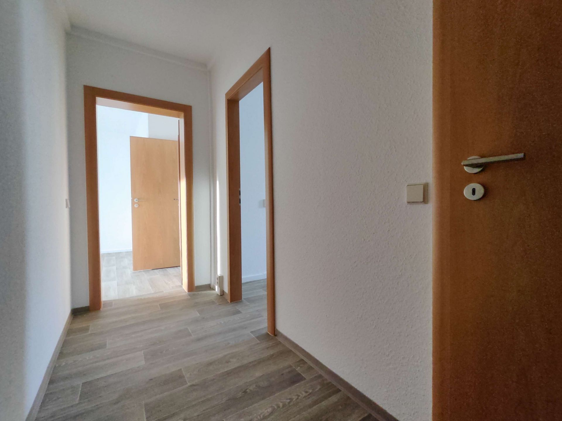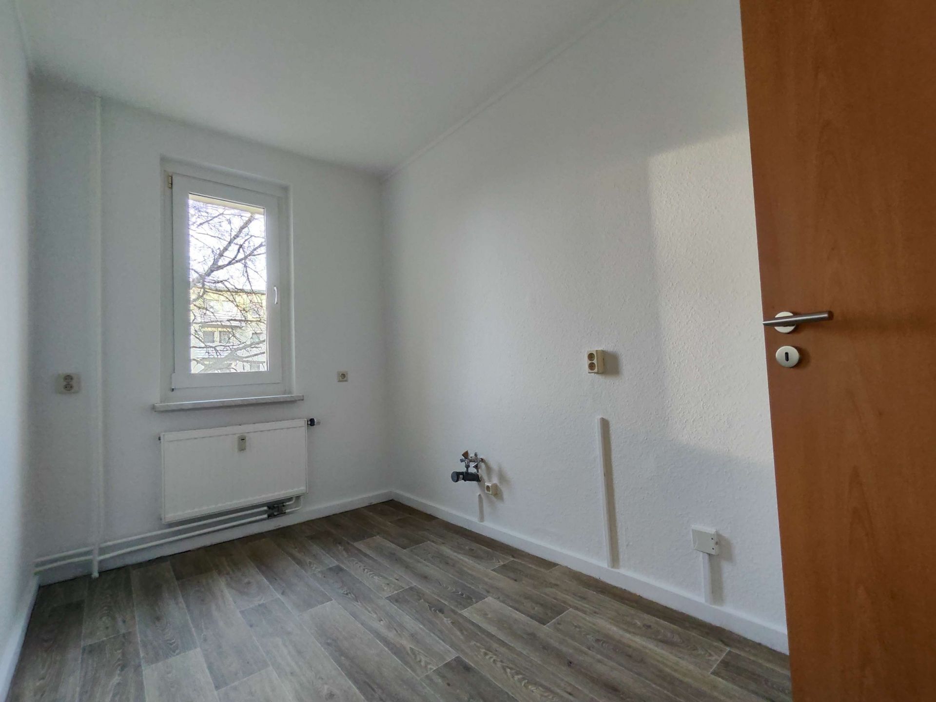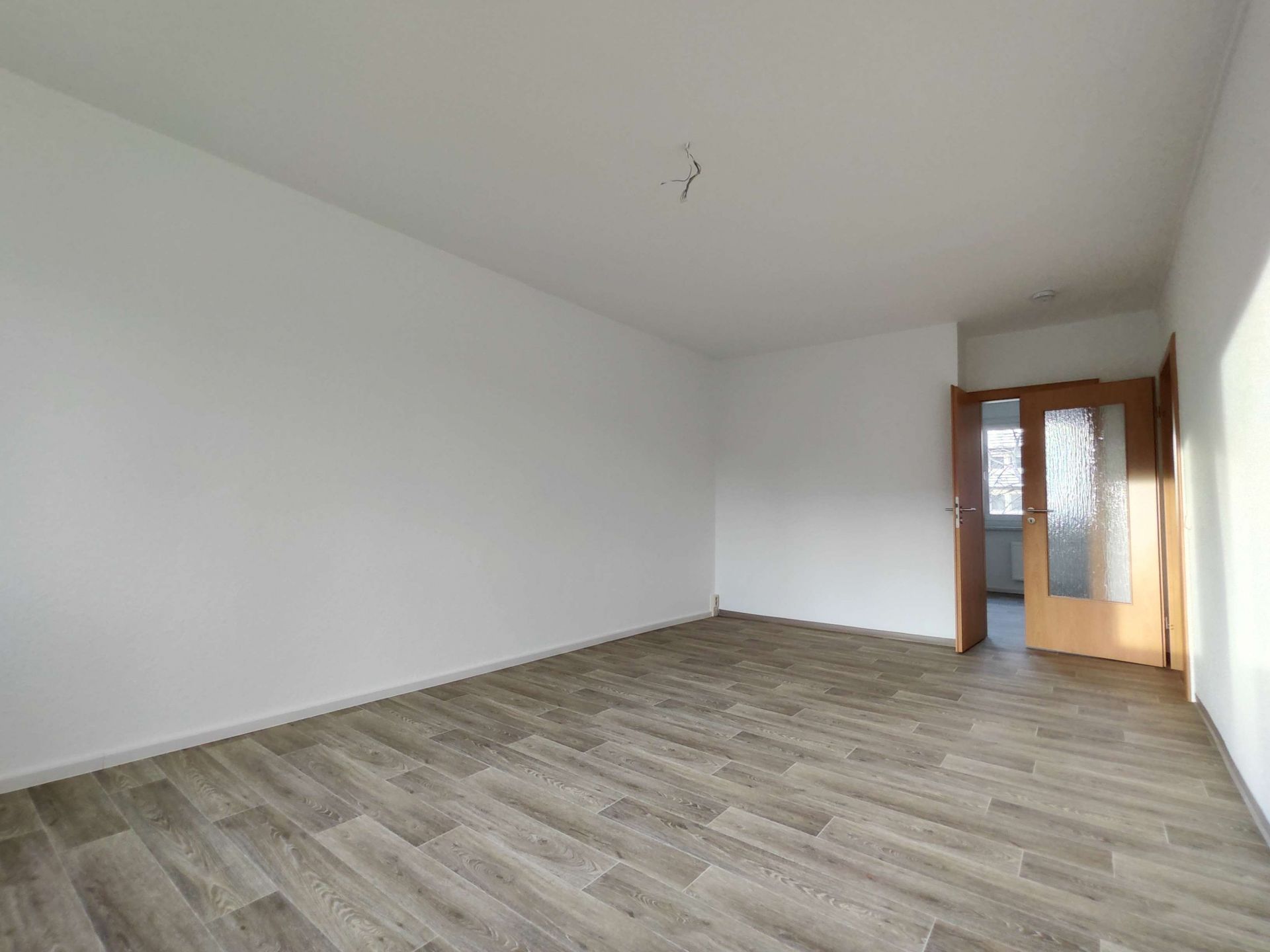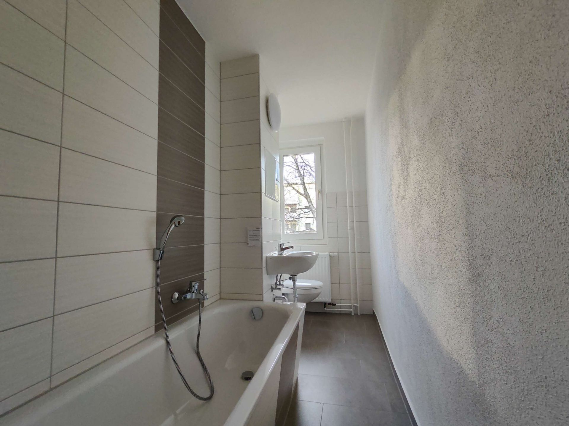 Die sonnige 2 Raum-Wohnung im 1. OG, besteht aus einem Wohnbereich mit danebenliegendem Schlafzimmer. Der Fußboden im Wohnbereich, Schlafzimmer und Flur wurde mit einem warmfarbigen PVC-Belag ausgestattet. Das Badezimmer mit Badewanne ist modern gefliest. Ein Waschmaschinenanschluss ist in der Wohnung vorhanden. Die Küche ist mit einem Fenster versehen. Fernwärme zur Heizungs- und Warmwasserversorgung. In den Betriebskosten ist ein monatlicher Betrag in Höhe von 5,07 € für den Fernsehanschluss enthalten.